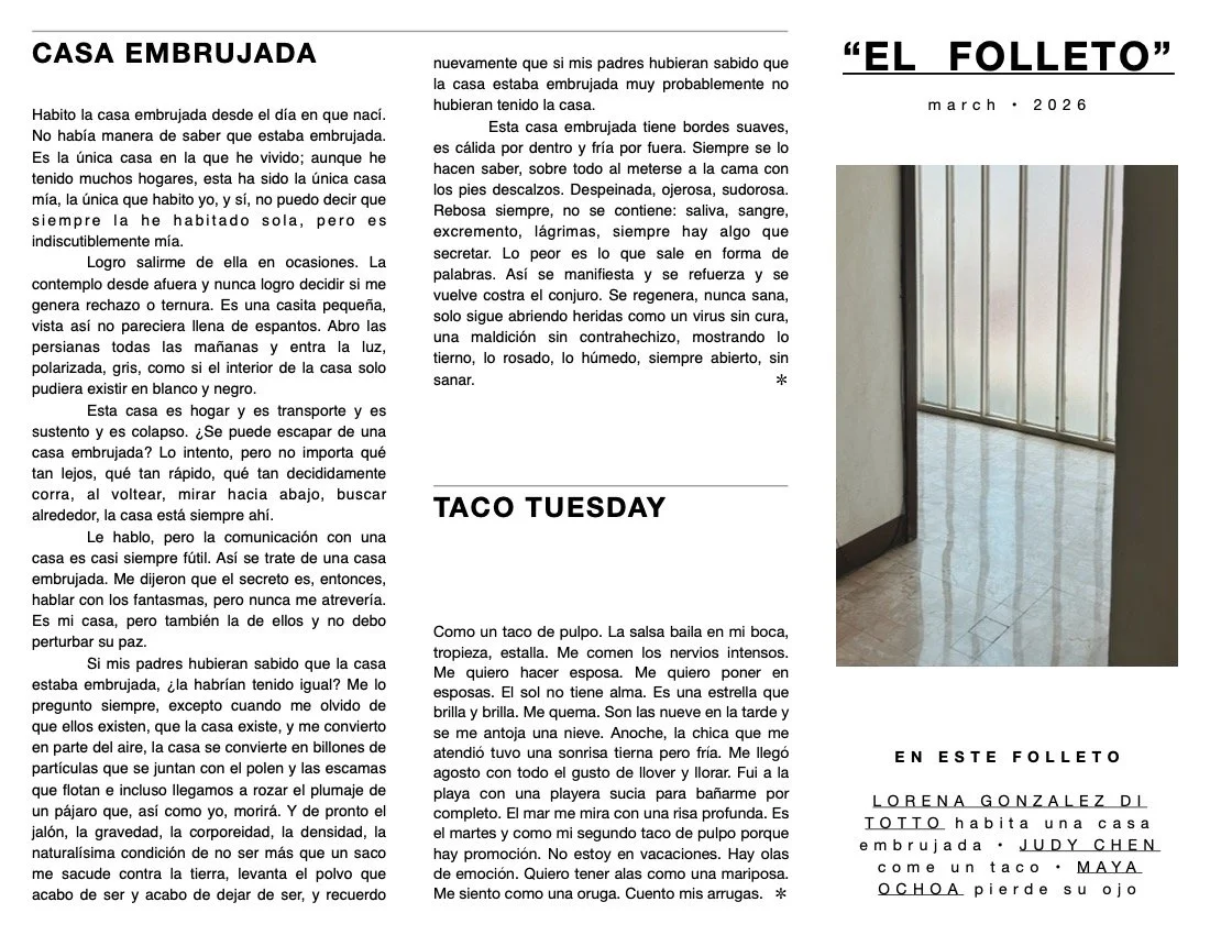 LORENA GONZALEZ DI TOTTO habita una casa embrujada • JUDY CHEN come un taco • MAYA OCHOA pierde su ojo